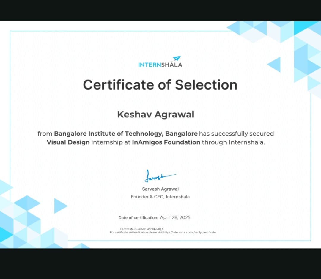 Got the internship offer at InAmigos Foundation,but was unable to join.