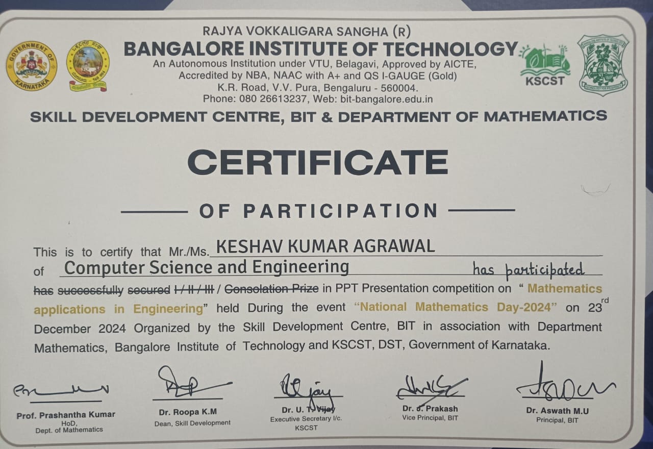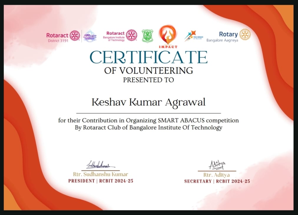 Volunteed a national level competitionfor primar school students held at BIT,bangalore